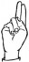 На ћирилици написано КОНСТАНТИН БУМБАРЕВИЋ састоји се из 20 слова [?]. Исписано ћириличном једноручном азбуком за глувонеме: